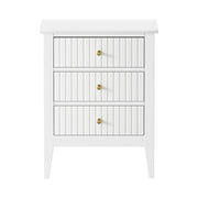 In terms of style, the bedside table has all the vibes of a cottage-inspired piece that stands out from the ordinary. With character and presence to add a rustic touch to your decor. The triple drawers, with stripe textured fronts, are blessed with ample space whilst the auric-hue brass handles make for easy opening and closing besides their aesthetic qualities.